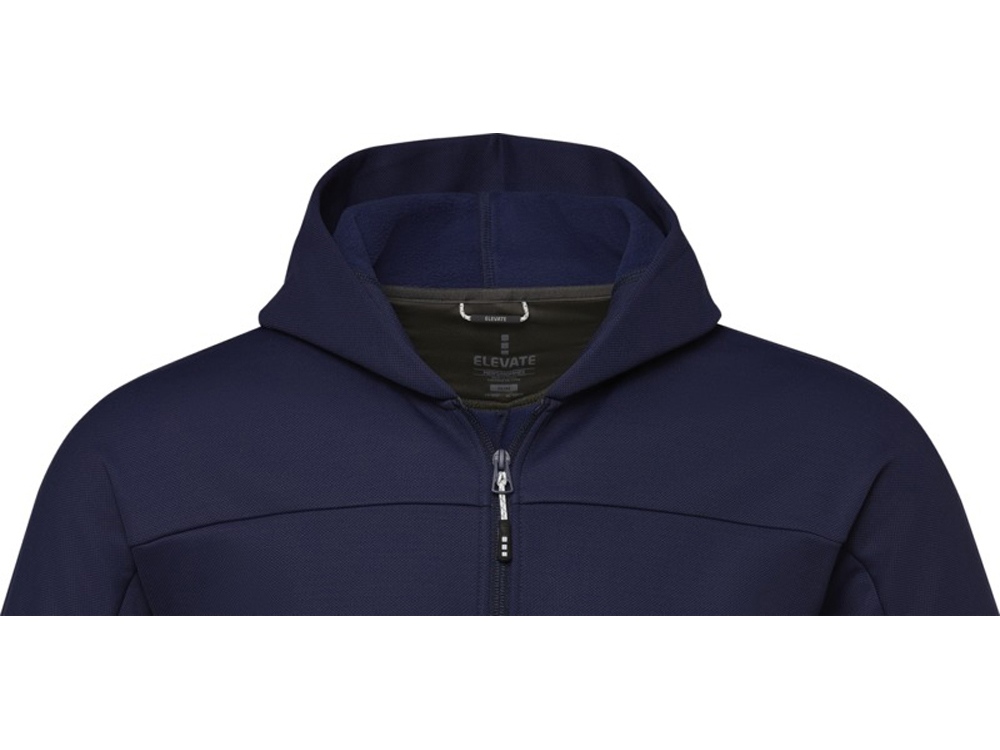 По центру спереди расположена обратная застежка-молния. Карманы спереди. Внутренняя сторона покрыта ворсом. Петля для подвешивания с фирменной символикой. Горловина из атласа. Внутреннее выходное отверстие для медиа с направляющей для шнура. Полумесяц. Главный лейбл нанесен методом термоприклеивания, удобным для размещения рисунков на ткани.