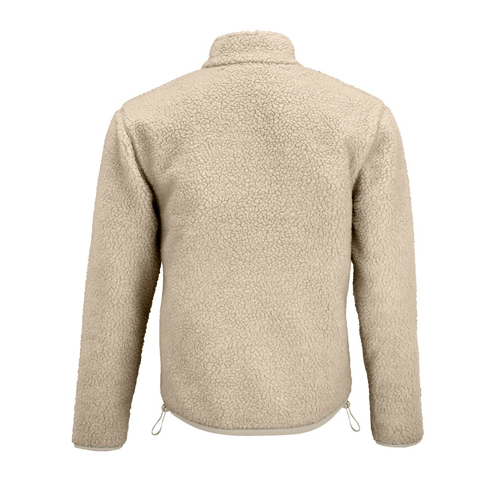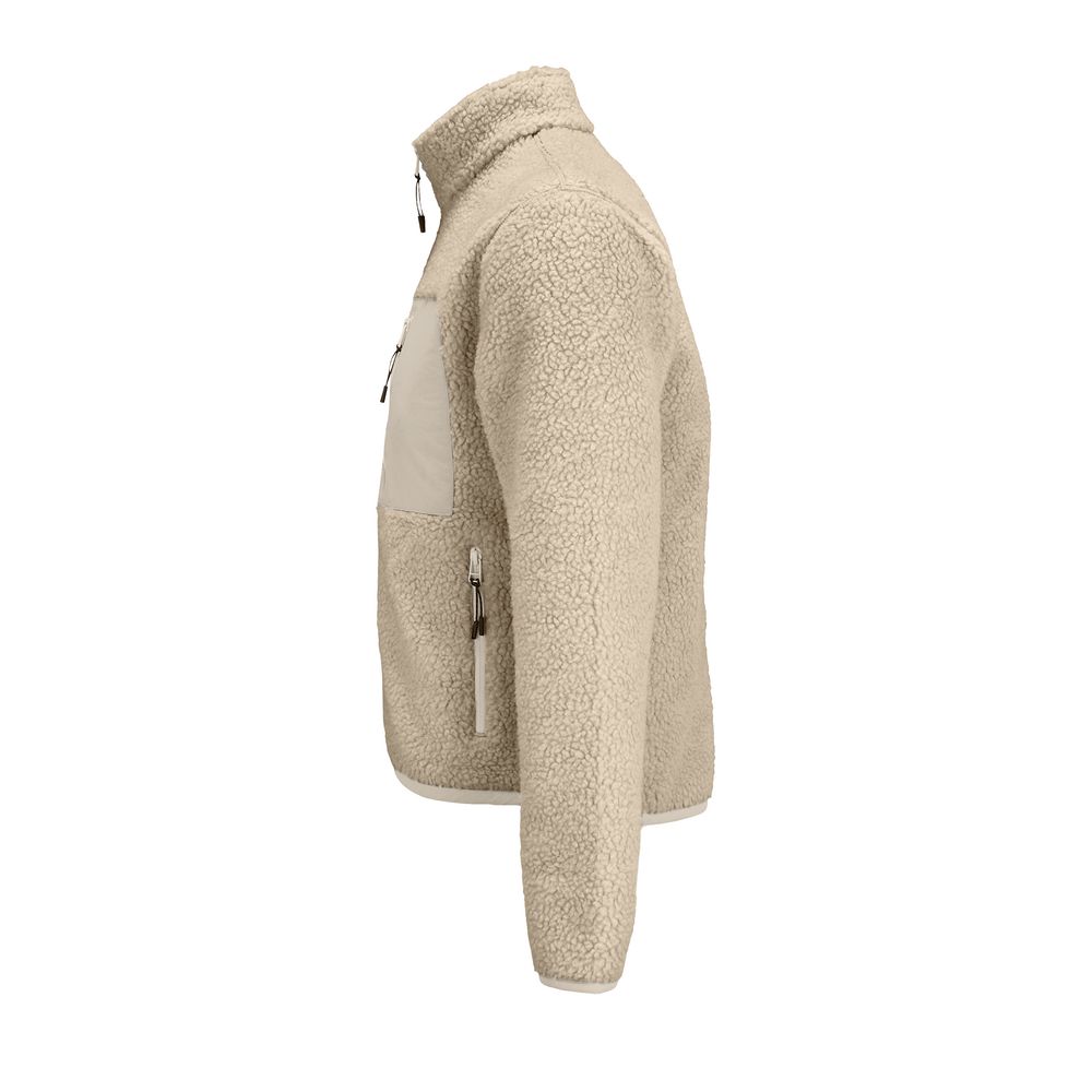 Куртка унисекс из фактурной искусственной шерпы с гладкой отделкой из таслана.
