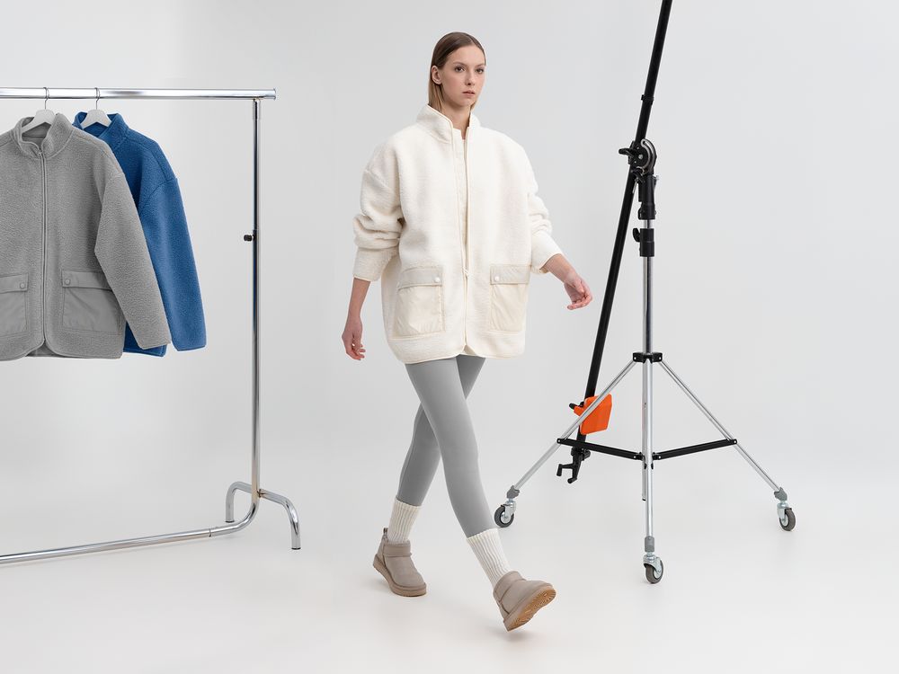 Куртка на молнии из современного двухслойного материала — модный искусственный мех снаружи и уютный флис внутри. Накладные карманы из гладкого нейлона создают заметный визуальный контраст и делают куртку Oblako по-настоящему стильным предметом гардероба.