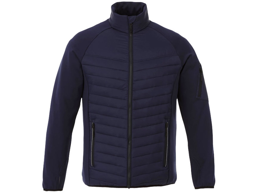 Утепленная куртка Banff. Внутренний противоветровой клапан и защита подбородка. Внутренний выход для медиапроводов. Удлиненная задняя часть изделия. Манжеты-резинки контрастного цвета. Отделка контрастной тканью. Отражающие детали. Молния с контрастной лентой. Молния легкого скольжения. Петелька-вешалка. Комфортный ярлык-трансфер на изделии. 100% нейлоновая тканая матовая отделка 380T, водоотталкивающая и пухонепроницаемая ткань. Контрастная ткань: 94% полиэстер, 6% эластан с водоотталкивающей поверхностью. 38 г/м².