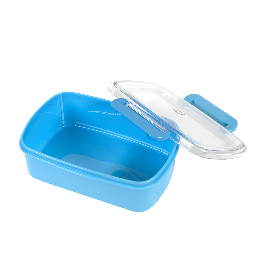 Ланч-бокс с прозрачной крышкой. Не герметичный. Подходит для использования в микровоолновой печи (со снятой крышкой), в посудомоечной машине, в морозильной камере. Корпус выполнен из PP-пластика. BPA-free (не содержит бисфенол А).