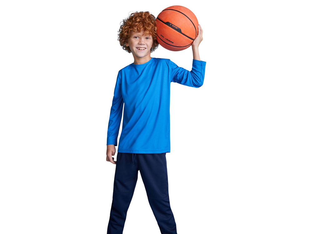 Детский лонгслив из технологичного полотна. Отстрочки в тон. Спинка с удлинением. Боковые швы со смещением вперед.
