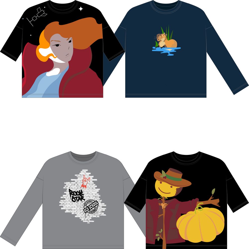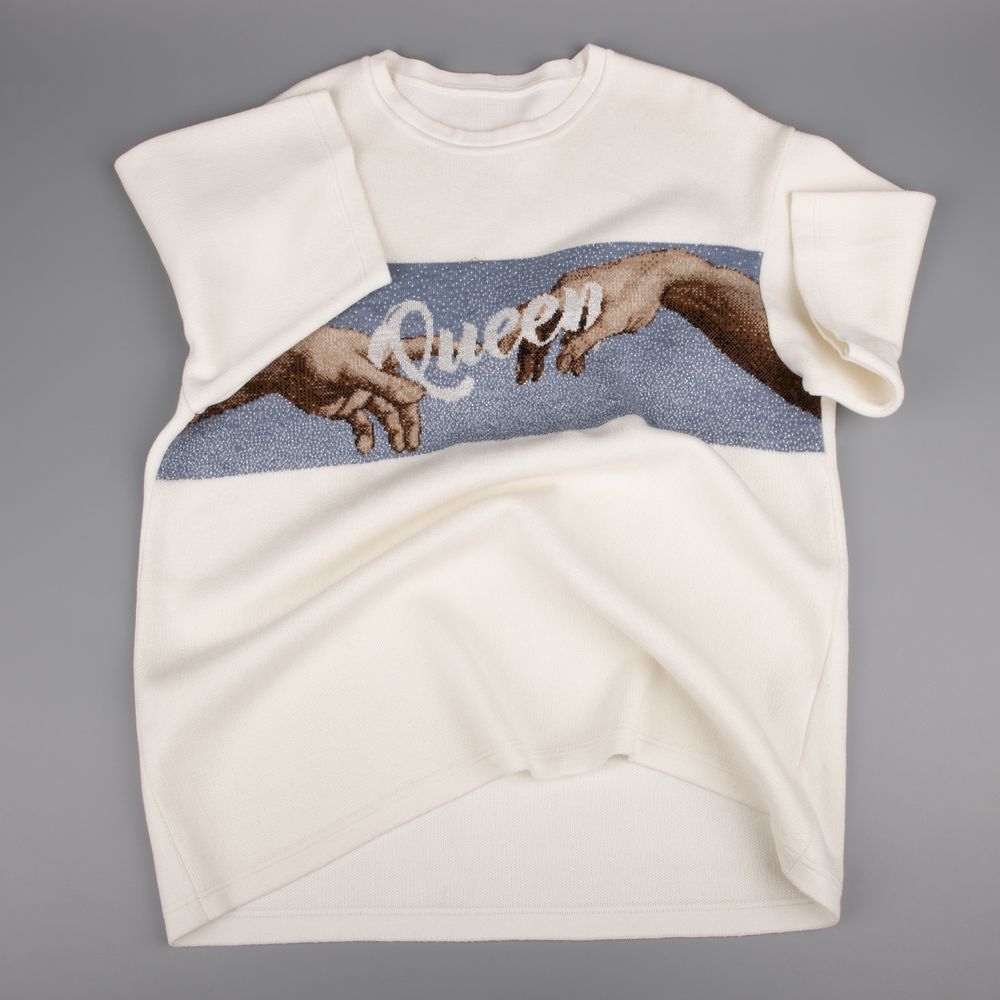 Лонгслив унисекс с вывязанным логотипом и индивидуальным рисунком в фирменной цветовой гамме.