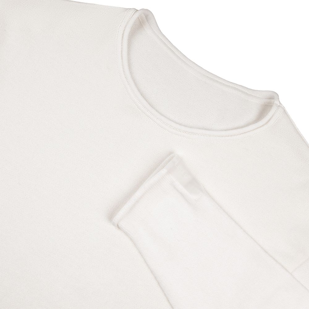 Лонгслив Fuori средней плотности с широким воротом, спущенной линией плеча и свободно подворачивающимися краями по низу, на рукавах и вороте, которые добавляют модели еще большей расслабленности. Прозрачная бирка с логотипом бренда на рукаве не нарушает минималистичности образа.