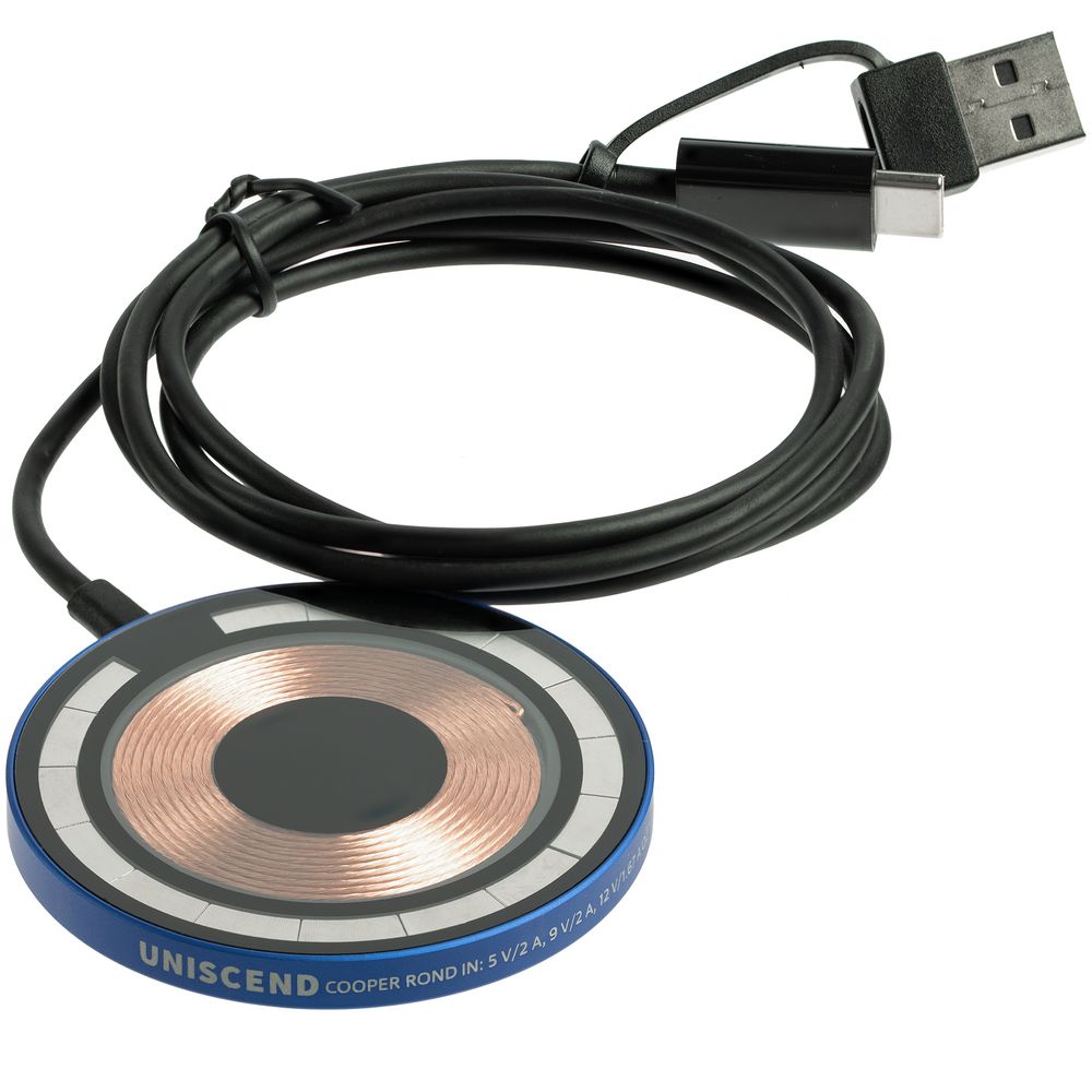 Магнитное зарядное устройство Cooper Rond — это не только притягивающая взгляд электронная «начинка» под прозрачной панелью, но и мощная (до 15 Вт) беспроводная зарядка Qi.