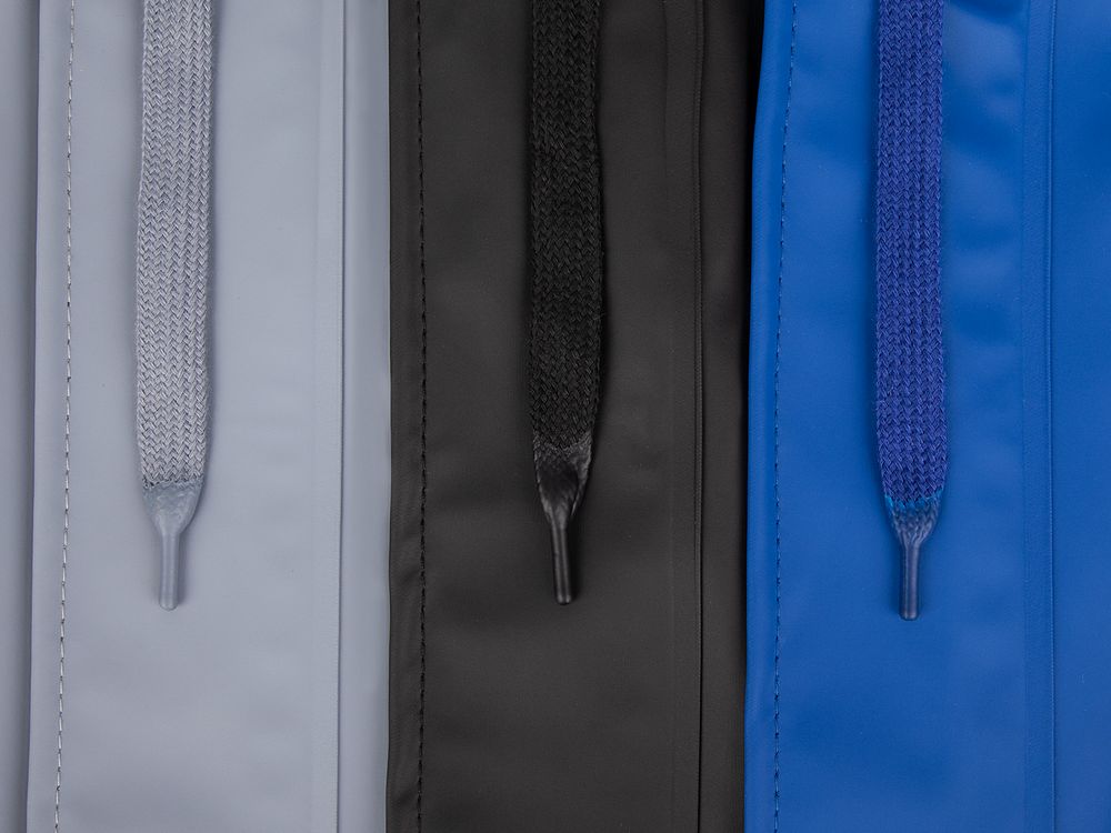 Плащ-дождевик с капюшоном из полиэстера с полиуретановым непромокаемым покрытием.
