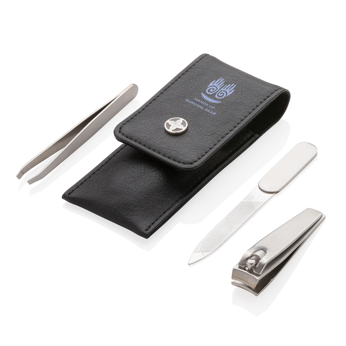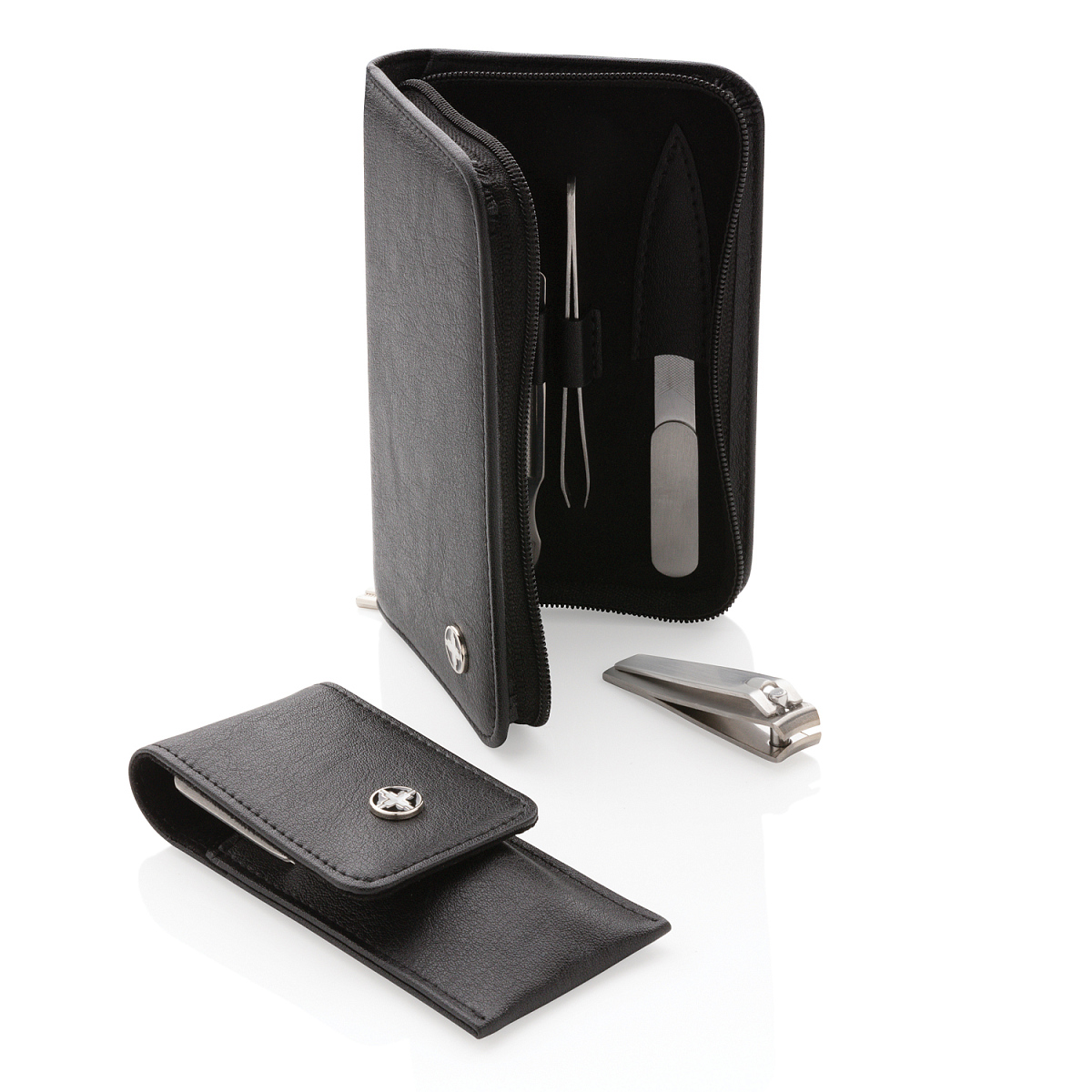 Идеальный набор для ухода за собой от Swiss Peak. В состав входит 3 инструмента: кусачки, пилочка и пинцет. Инструменты изготовлены из матовой нержавеющей стали, упакованы в красивый чехол из PU. Длина 11 см., ширина 4,5 см., высота 1,6 см., диаметр 0 см.