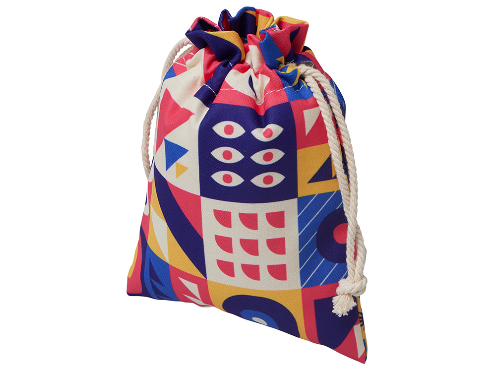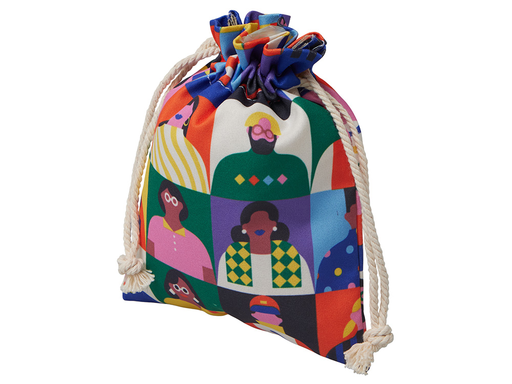 Стильная упаковка для украшений, выполненная из натурального хлопка. Маленький и удобный подарочный мешочек дополнен завязками. Текстурная ткань имеет естественный цвет неотбелённого хлопка, поэтому хорошо транслирует идеи экологичности и отказа от лишнего пластика. Полноцветная печать доступна на обеих сторонах.