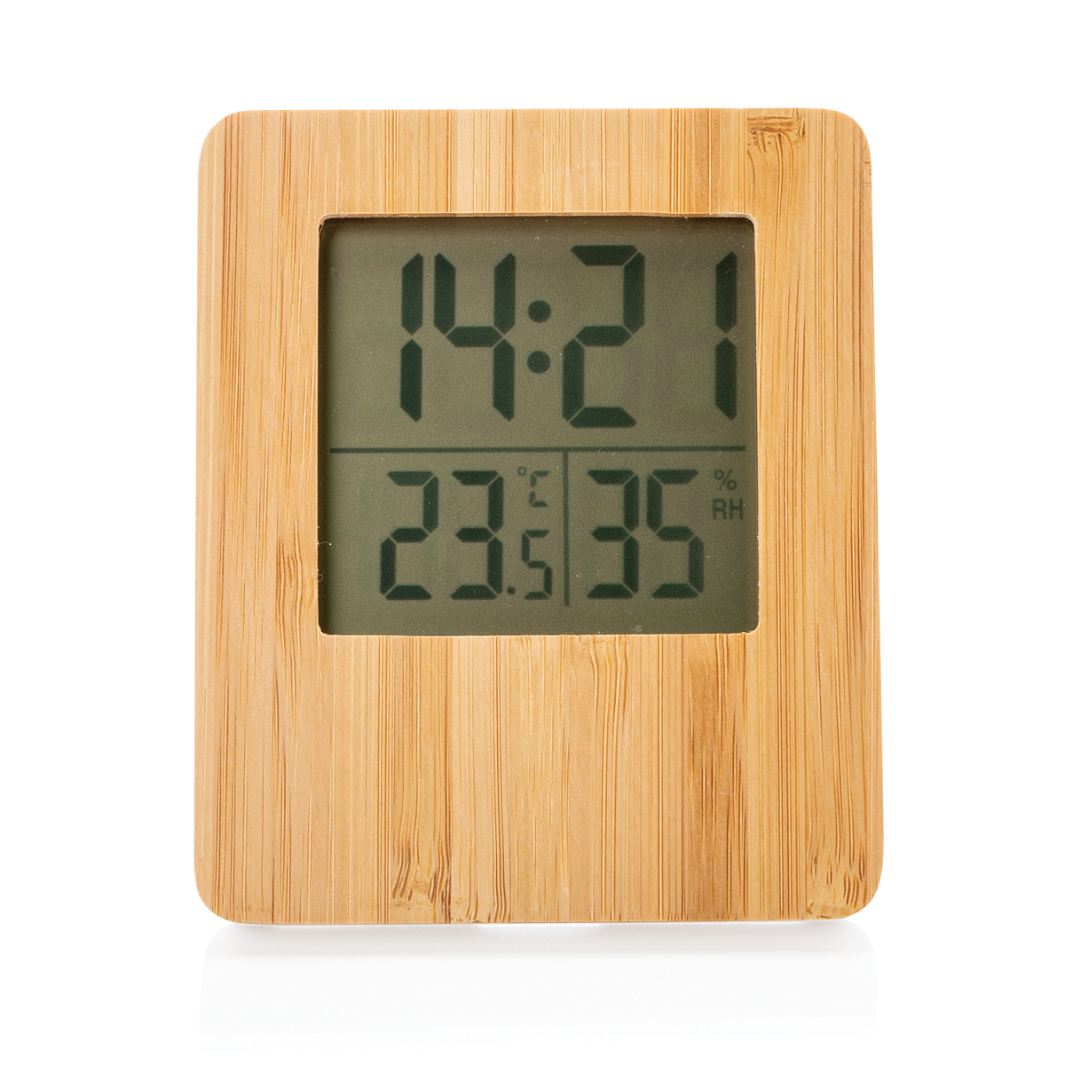Метеостанция Bamboo способна показывать несколько параметров: время и дату, влажность в помещении и температуру. Поставляется с двумя батарейками ААА. Сделана из натурального бамбука и ABS-пластика. Длина 9,9 см., ширина 12 см., высота 1,8 см., диаметр 0 см.