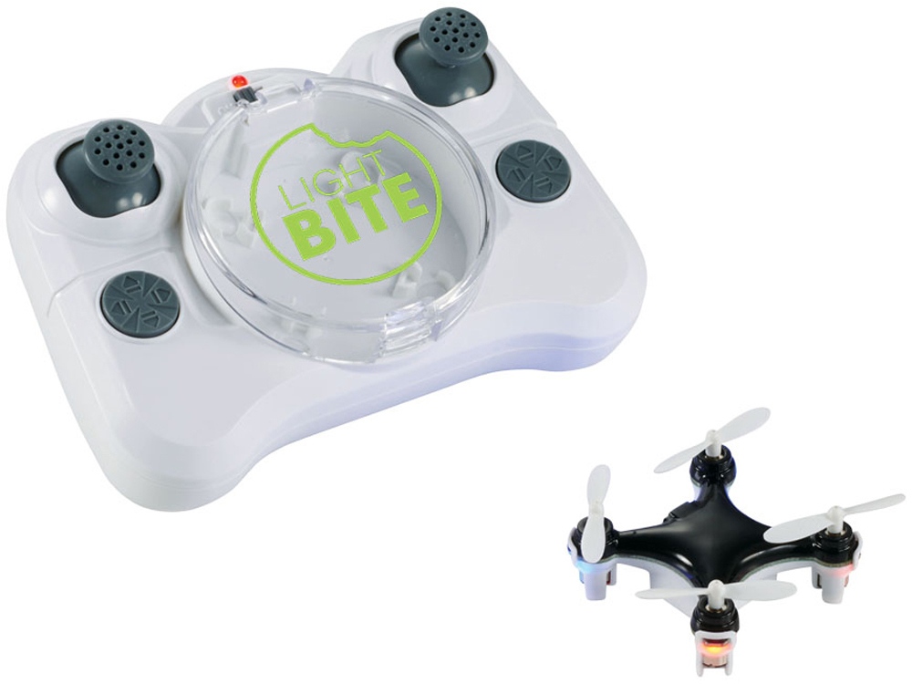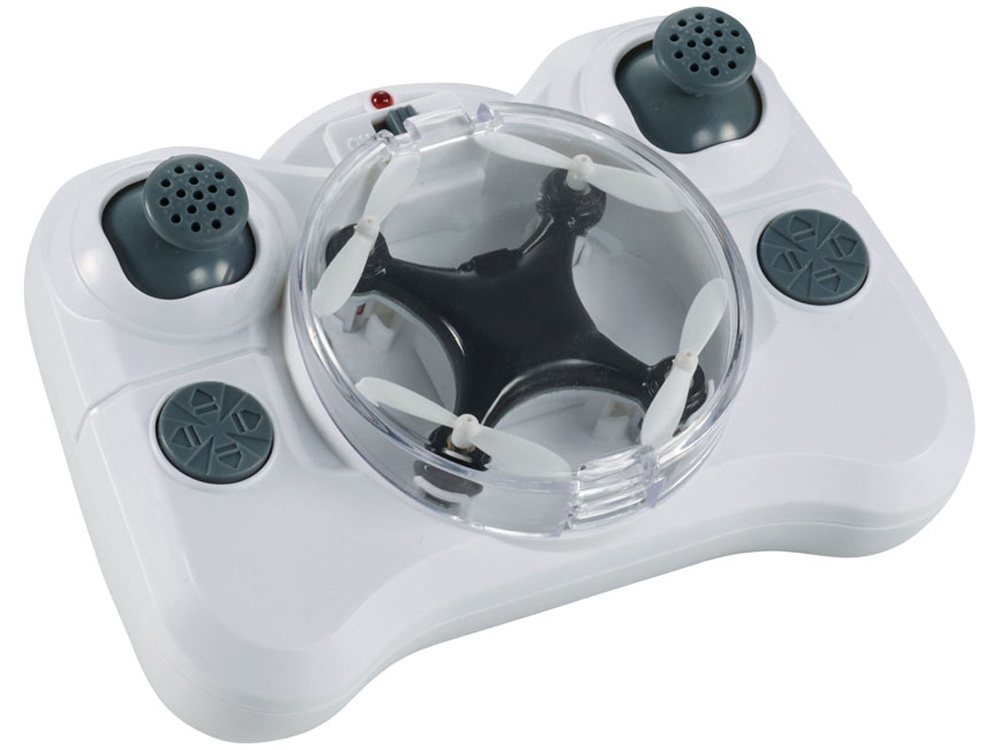 Легкий мини дрон карманного размера можно использовать в помещениях и на открытом воздухе. Мини дрон оснащен светодиодами, благодаря которым устройство можно использовать в ночное время. Пульт дистанционного управления можно использовать в качестве футляра для удобной переноски мини дрона. Мини дрон может делать петли под углом 360° и лететь до 50 метров на одном заряде. Время полета составляет около 5 минут, время зарядки – около 20 минут. Мини дрон можно заряжать с помощью включенного в комплект кабеля Micro USB. Аккумуляторы в пульте дистанционного управления включены в комплект. АБС-пластик.