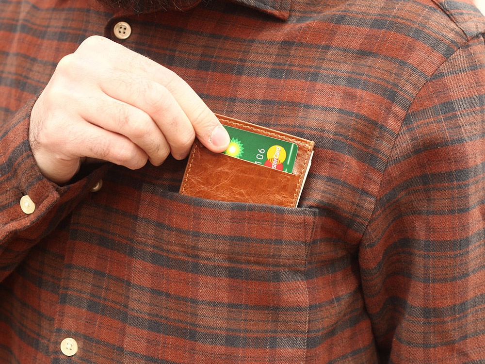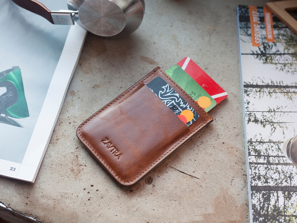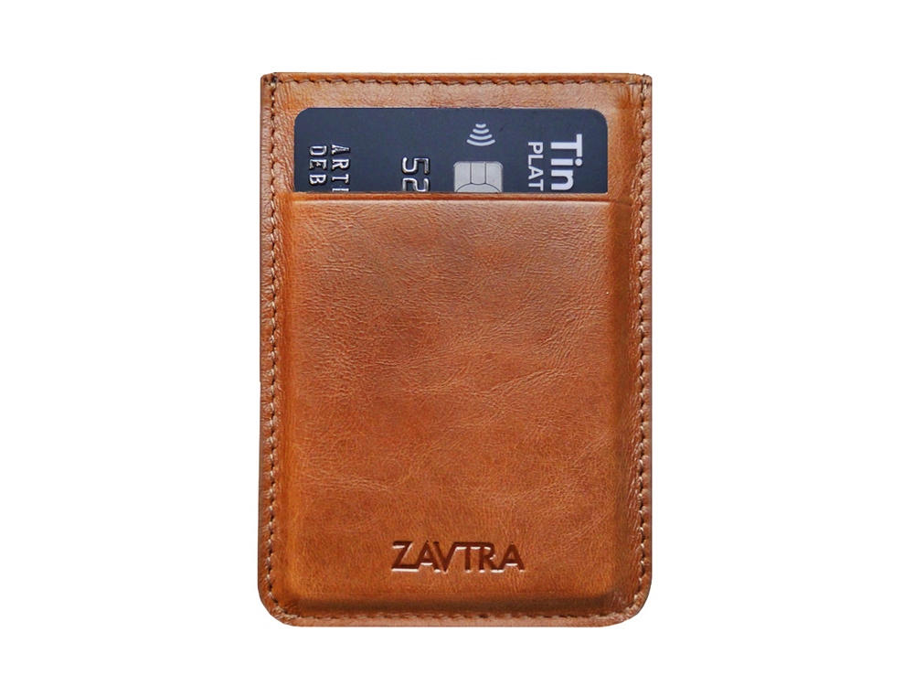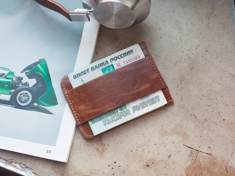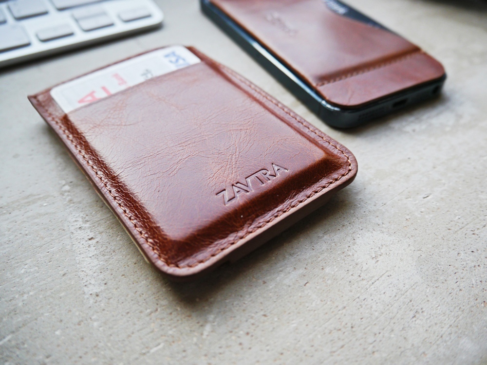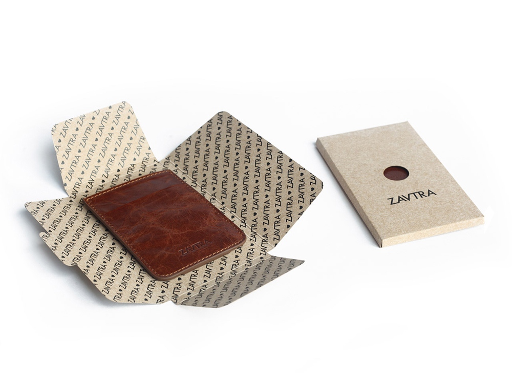 Компактный кожаный кошелек ZAVTRA вмещает 4–5 банковских либо иных карт, права или пропуск, а также наличные на несколько дней.