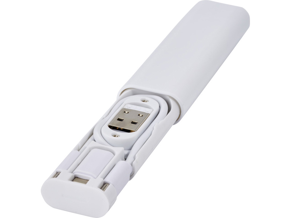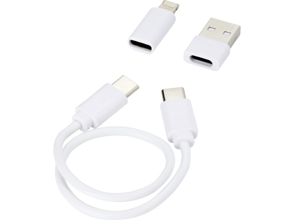 Модульный кабель для передачи данных и зарядки из переработанной пластмассы, поставляется в элегантной коробке для хранения. Кабель предлагает несколько решений для зарядки: Вход Type-C и USB-A, а также выход Type-C/iOS/micro USB. Благодаря всем этим адаптерам и разъемам данный кабель позволяет заряжать большинство смартфонов, камер, блоков питания, наушников и т. д. Кабель имеет максимальную выходную мощность 2 А. Имеет специальный штифт, который пригодится в любой момент, когда вам понадобится вынуть SIM-карту из телефона. В коробке для хранения также есть место для карты памяти micro SD и нано-SIM-карты, что делает ее идеальным аксессуаром для путешествий. Длина кабеля: 28 см. Поставляется в конверте из 100% крафт-бумаги вторичной переработки. Переработанный ABS пластик.