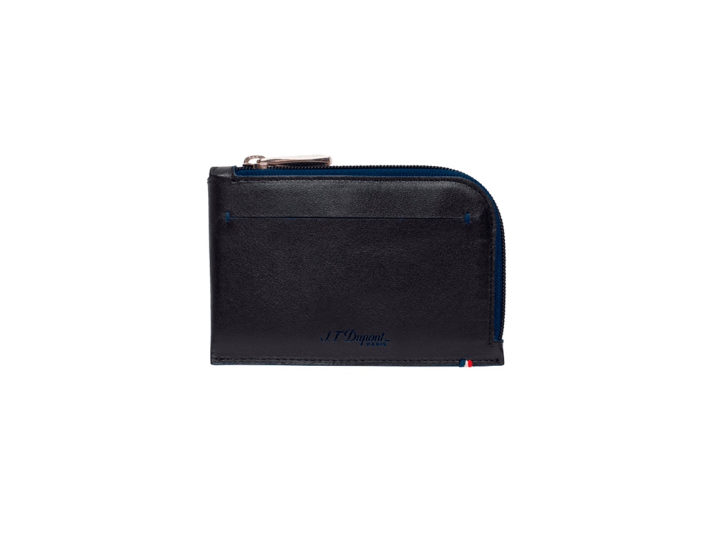 Компактную монетницу из телячьей кожи, коричневой снаружи и синей внутри, с деликатной строчкой и тисненым логотипом S.T. Dupont можно использовать как кошелек или визитницу. Внутреннее отделение застегивается на молнию.