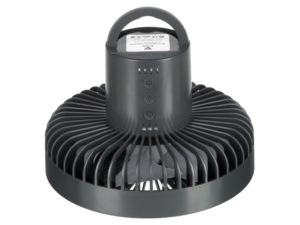 Световой индикатор отображает процесс зарядки вентилятора, позволяющий определить, когда устройство полностью заряжено или скоро разрядится (время зарядки 3-4 часа).