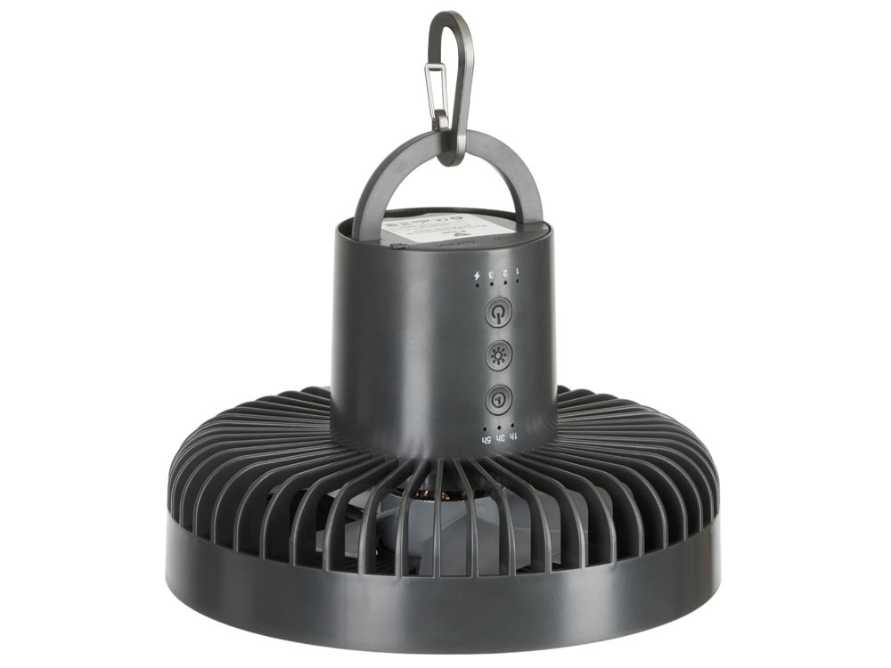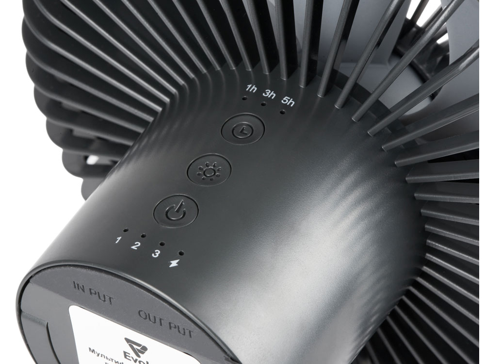 Ещё одна незаменимая функция для кэмпинга - возможность заряжать от вентилятора другие устройства (как от пауэрбанка), мощность аккумулятора - 3600 мА/ч.
