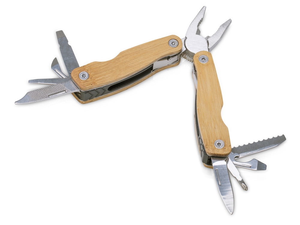 Компактный мультитул на каждый день с корпусом из бамбука. Поставляется в коробочке с чехлом.