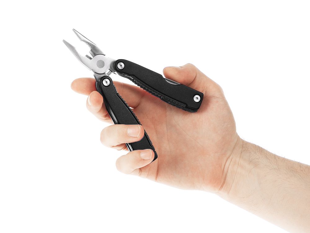 Классический мультитул-плоскогубцы, в рукоятках которого прячется еще 10 полезных инструментов от отвертки до пилы. Выручит во многих бытовых ситуациях, а для хранения удобно складывается в прочный чехол.