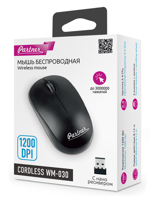 Мышь беспроводная Partner Cordless WM-030, черный можно заказать в нашей компании по самой доступной цене от 349 рублей.