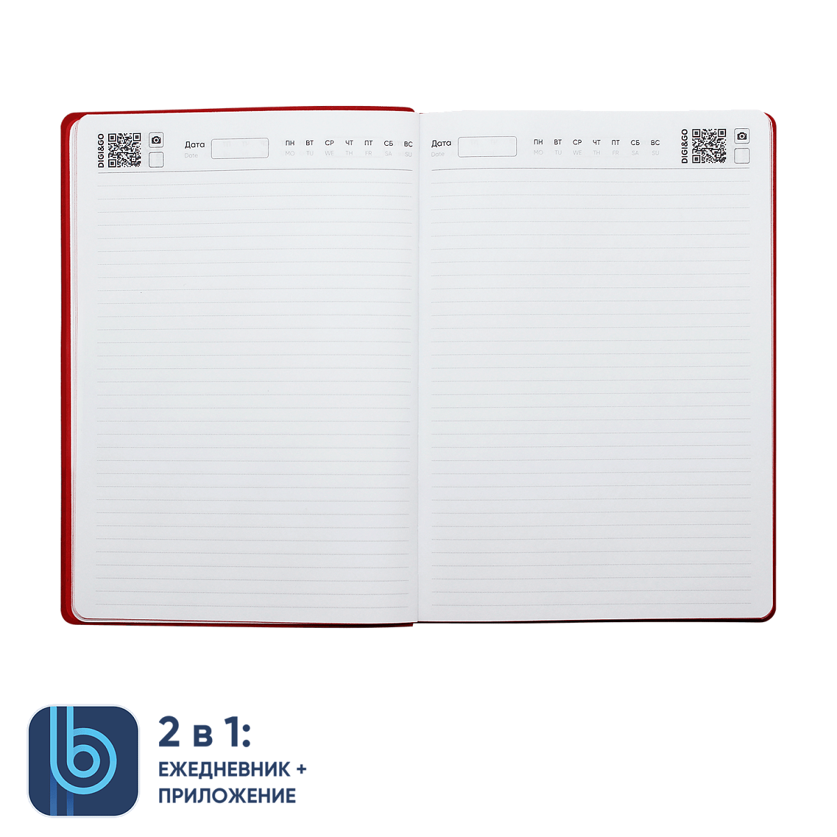 Ежедневник Bplanner 04 — изготовлен из качественной экокожи по своей структуре напоминающей софт-тач. Материал отличается более высокими эксплуатационными характеристиками и менее прихотлив при активном использовании (ношение в сумке, рюкзаке). У ежедневника предусмотрена опция хранения ручки на корешке, цветной форзац и нахзац. Обрез выкрашен в цвет обложки. На форзаце ежедневника расположен qr-код, который активирует годовой доступ к мобильному приложению. А приложение способно теперь еще и распознать и оцифровать текстовые заметки.