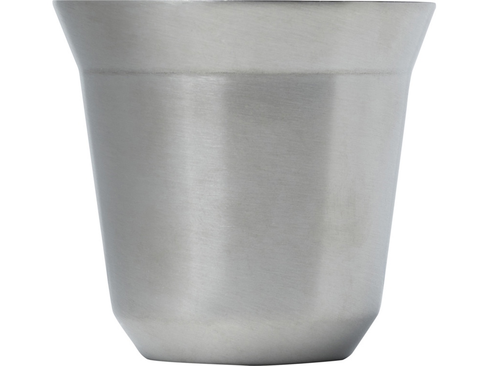 Набор из 2 чашек для эспрессо из нержавеющей стали, сертифицированной RCS, с двойными стенками. Объем — 80 мл. Поставляется в подарочной коробке из переработанного картона. 91% RCS certified recycled stainless steel.