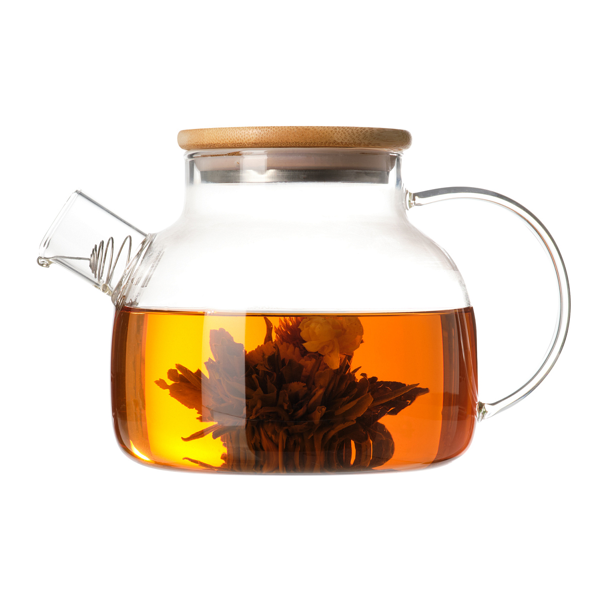 Чайник заварочный с бамбуковой крышкой объемом 800 мл подходит как для заваривания чая, так и для лимонадов или домашних морсов. Чашечки из стекла с двойными стенками будут гармонично дополнять вашу чайную церемонию.