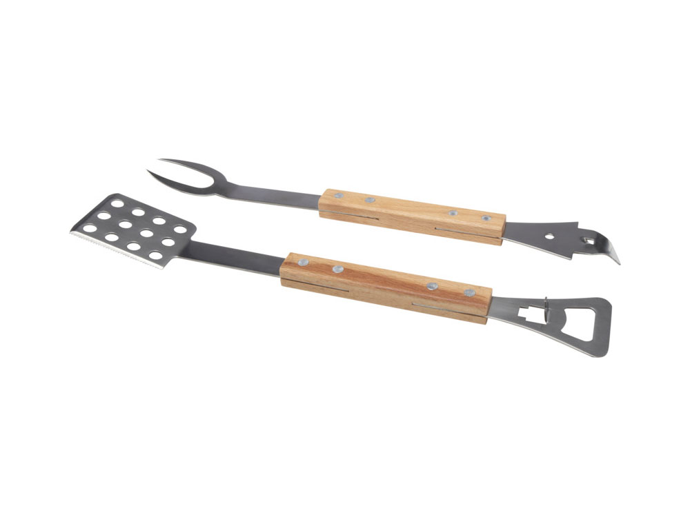 Этот удобный набор инструментов для барбекю 4-в-1 включает в себя лопатку, вилку, консервный нож и открывалку для бутылок — все они изготовлены из дуба и нержавеющей стали, сертифицированной RCS. Удобство и комфорт этого инструмента делают его идеальным подарком для любого любителя барбекю.