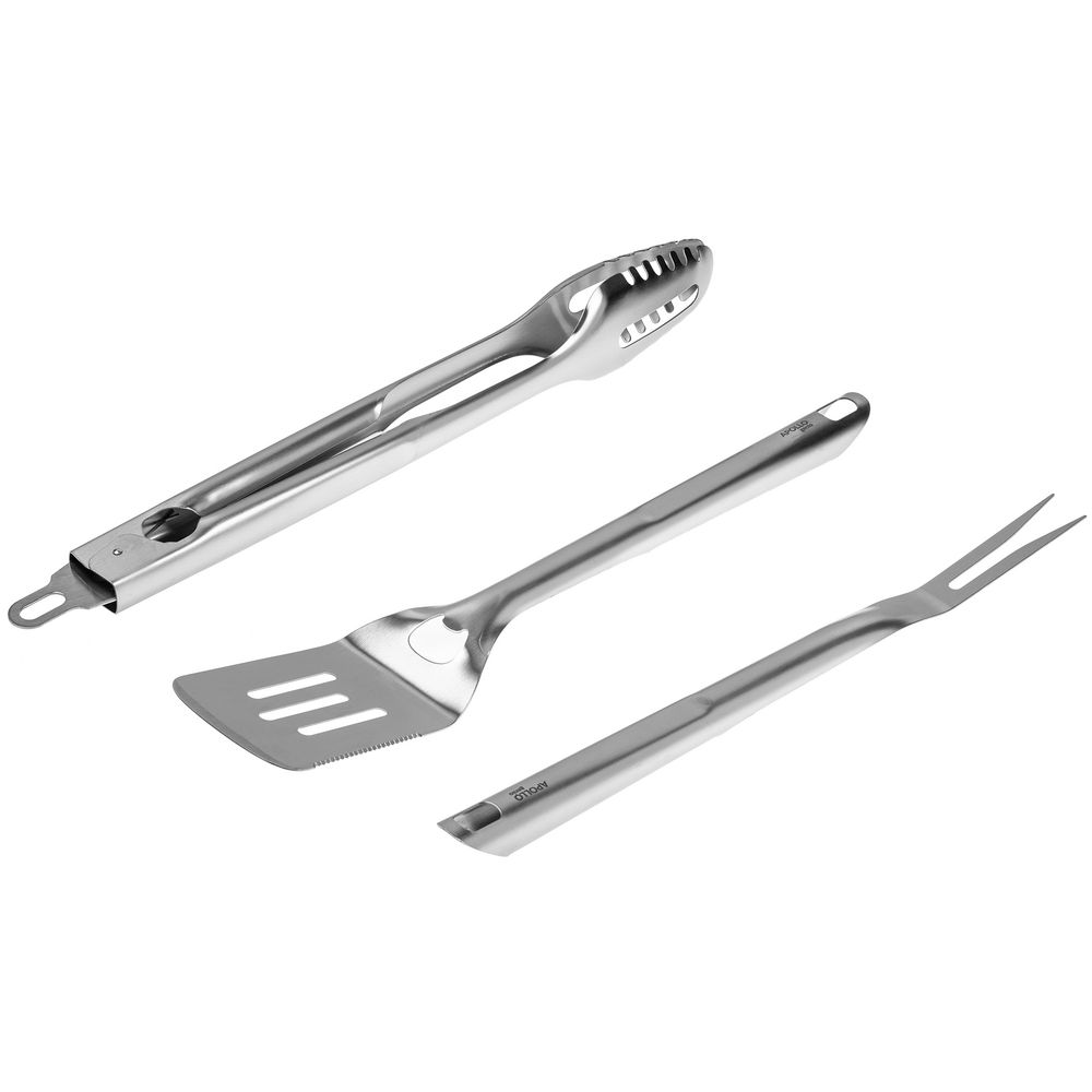 В набор входят: щипцы, вилка и лопатка.