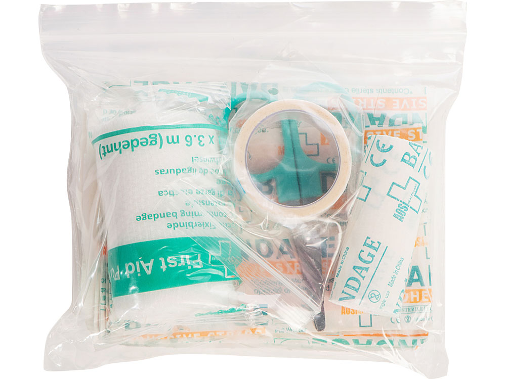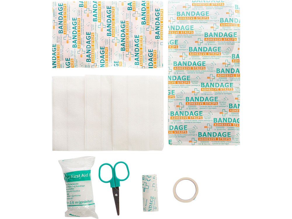 Комплектность: ножницы, бинт, лейкопластыри