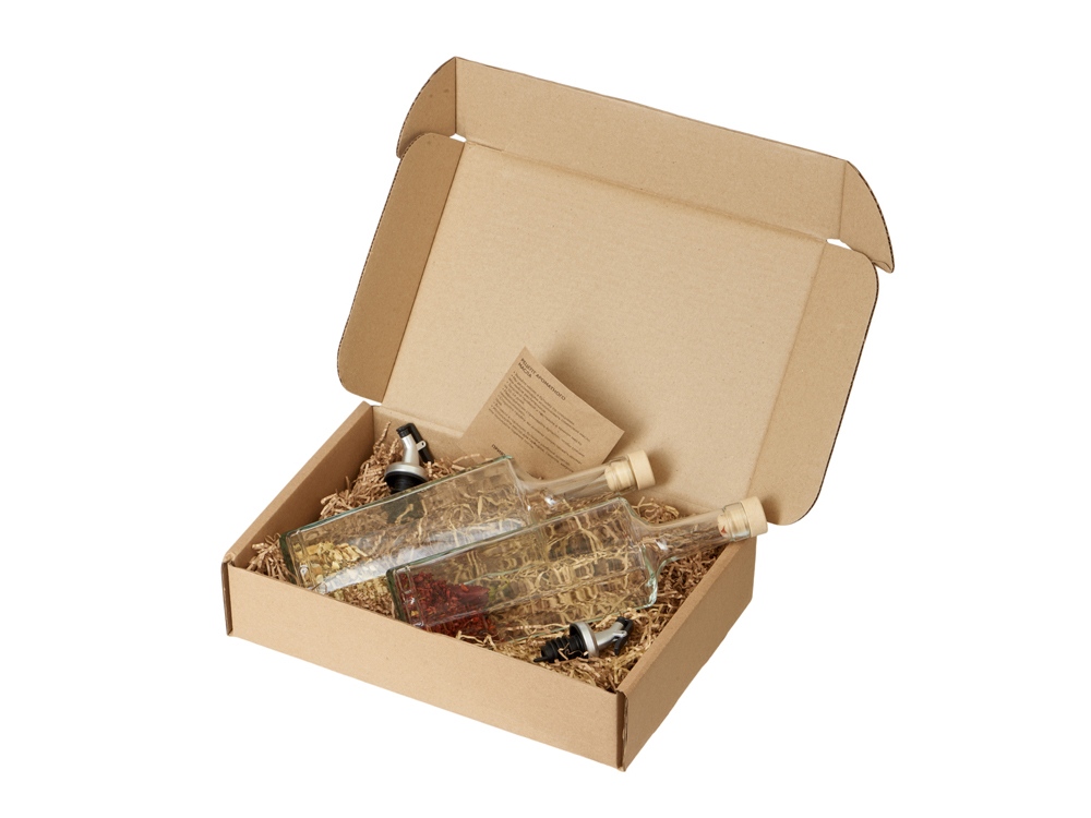 Комплектность: бутылки 500 мл- 2 шт, дозаторы для масла- 2 шт, приправа для масла- 2 шт, рецепт, упаковочный материал