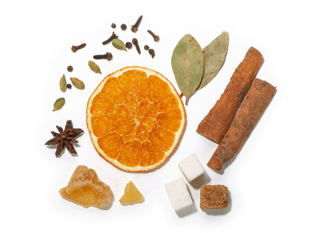 Состав: корица, лавровый лист, гвоздика, кардамон, бадьян, можжевельник, перец чёрный, перец душистый, имбирь, апельсин, сахар белый, сахар тростниковый