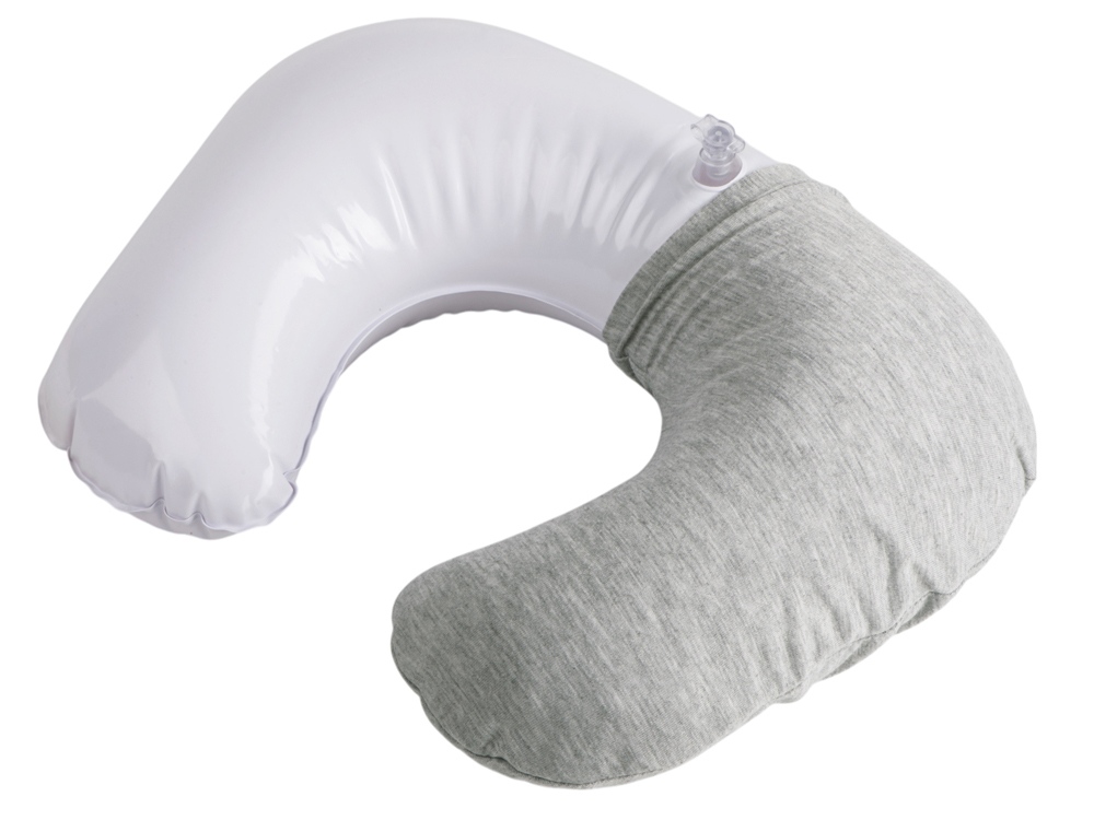 Набор выполнен из мягких комфортных материалов и включает в себя надувную подушку, маску для глаз, беруши и мешочек на завязках.