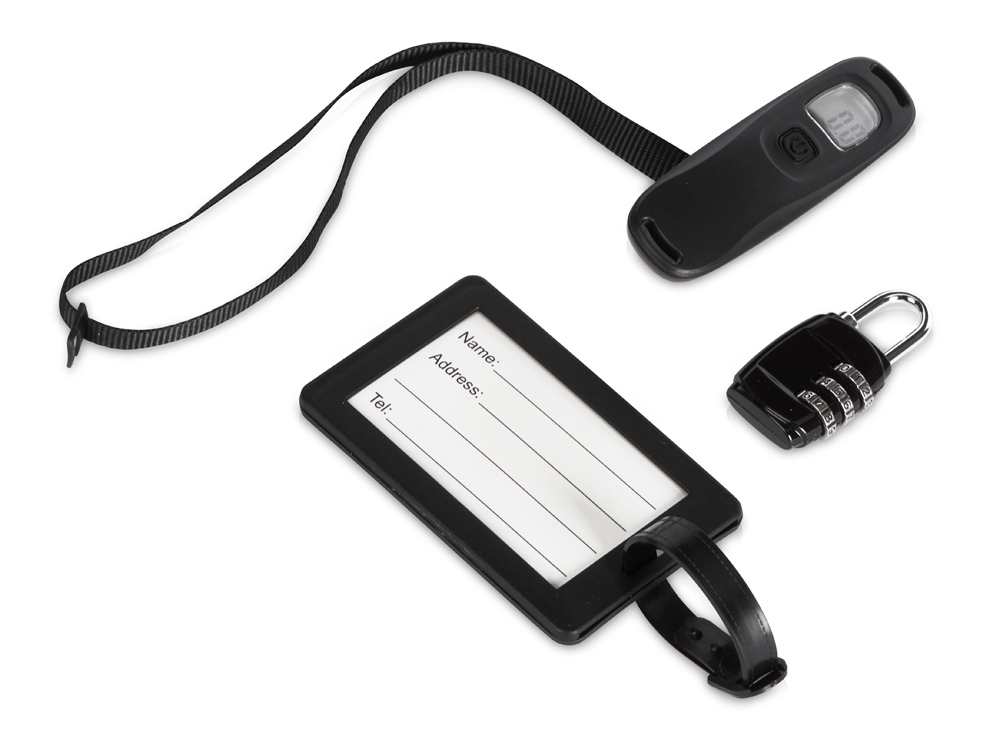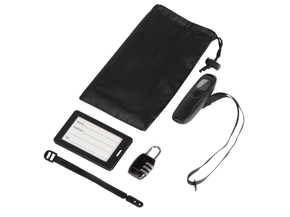 В набор входит всё самое необходимое в путешествии: багажные весы, бирка и замок. Особенно набор будет актуален, если вы летите самолётом.