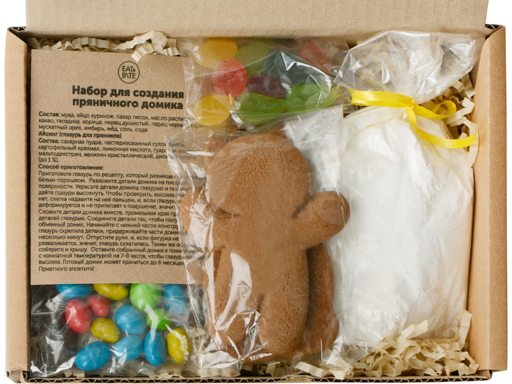 Комплектность: пряники, смесь для глазури, посыпка- 2 пакетика, кондитерский мешок