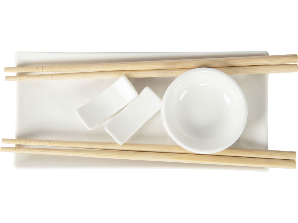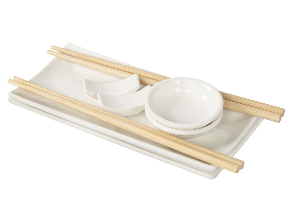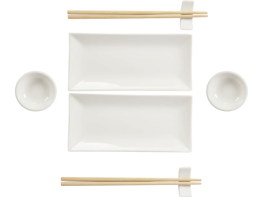 Комплектность: блюдце для сервировки- 2шт., соусник- 2 шт., палочки для суши- 2 комплекта, подставка для палочек- 2 шт.