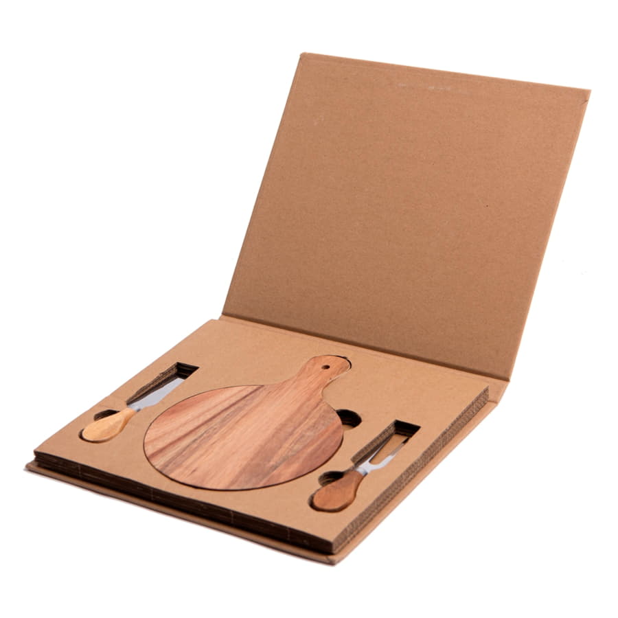 Набор для сыра пригодится как для нарезки, так и для сервировки. Индивидуальная упаковка - коробка из крафтового картона с ложементом