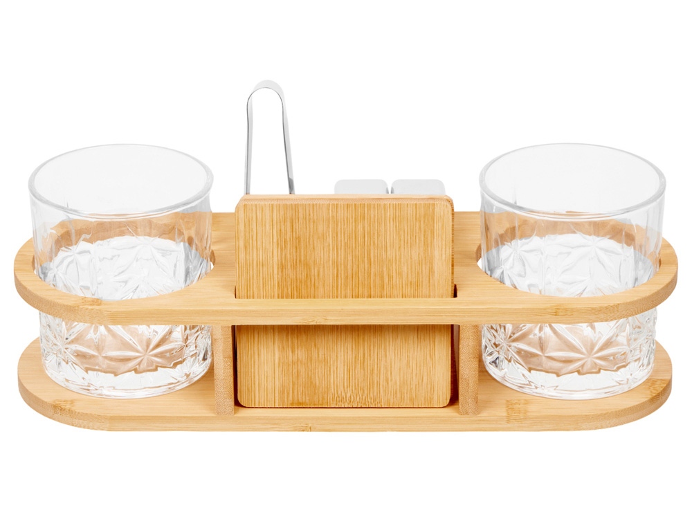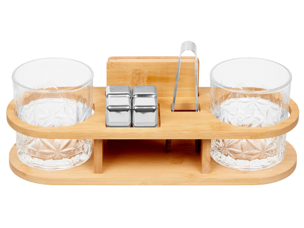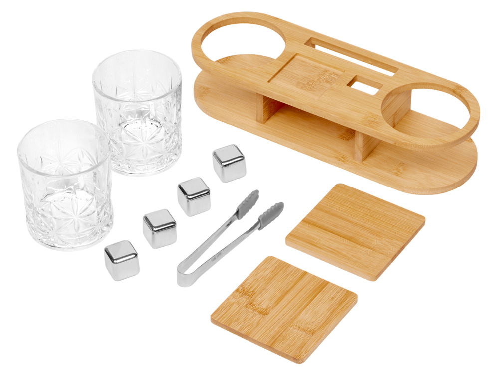 Комплектность: бокал для виски- 2 шт, щипцы, стальные камни- 4 шт, бамбуковый костер- 2шт