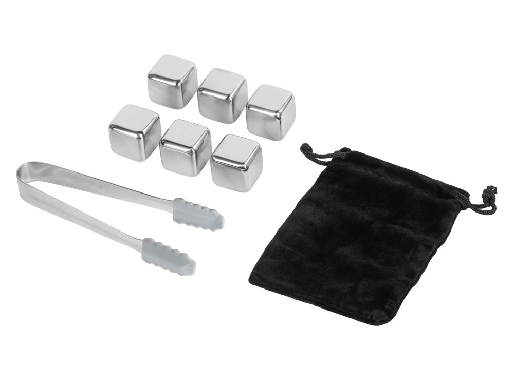 Набор для виски Skye состоит из шести охлаждающих камней из нержавеющей стали, бархатистого мешочка и удобных щипцов. Сет упакован в качественную коробку с магнитной крышкой винного цвета, а сверху надевается шубер с полиграфией, который можно заменить на какой-либо другой.