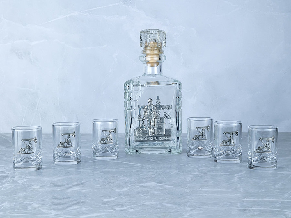 Набор со штофом Нефтяной можно заказать в нашей компании по самой доступной цене от 7 576.67 рублей.
