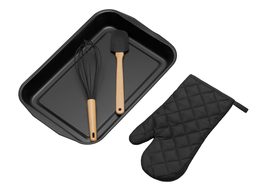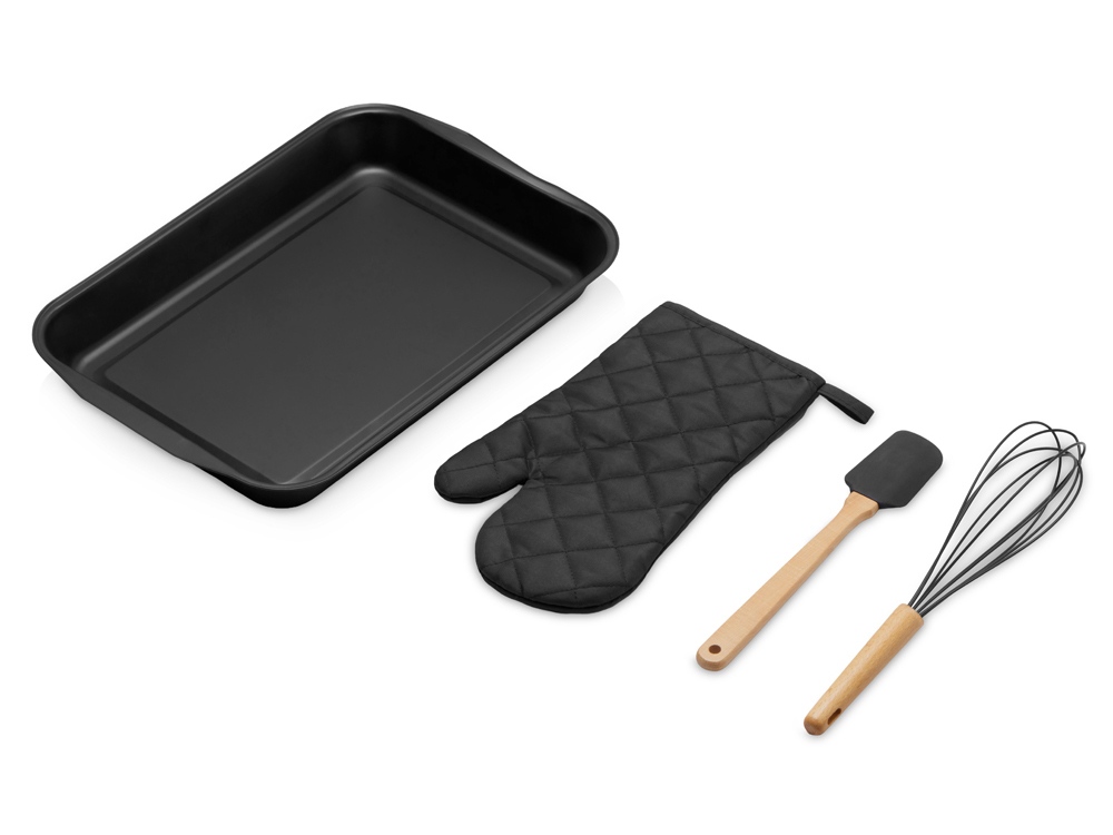 Комплектность: противень 41 х 27,5 х 4,3 см (внутр. размер 33 х 22 см) , рукавица 16 х 29,5 см, лопатка 28 см, венчик 30 см