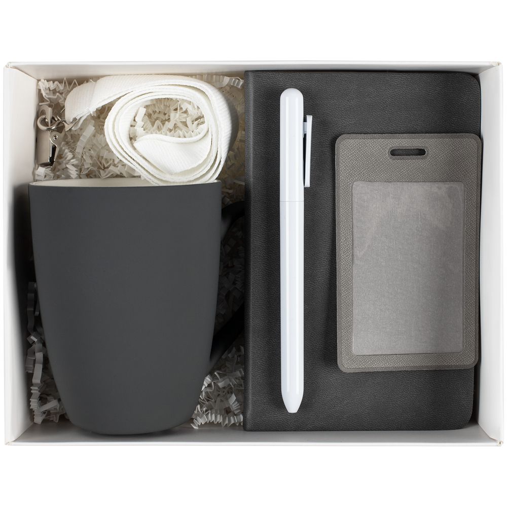 Лаконичный приветственный набор Hop In содержит все самое необходимое для успешной и быстрой адаптации нового сотрудника в команде. Это основные офисные принадлежности — блокнот и ручка — для подробной записи идей и планов, чехол для пропуска на ленте — для безопасности и идентификации, компактная кружка — для приятного перерыва в компании с новыми коллегами.