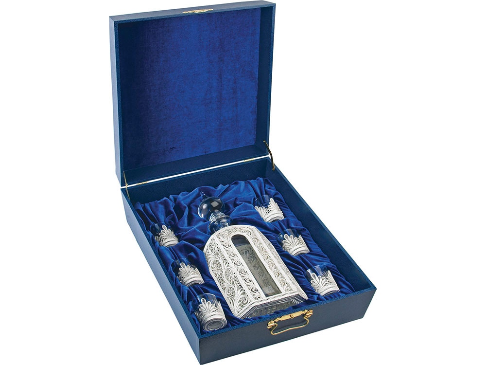 Набор Кремлевский: штоф с шестью стопками можно заказать в нашей компании по самой доступной цене от 100 000 рублей.