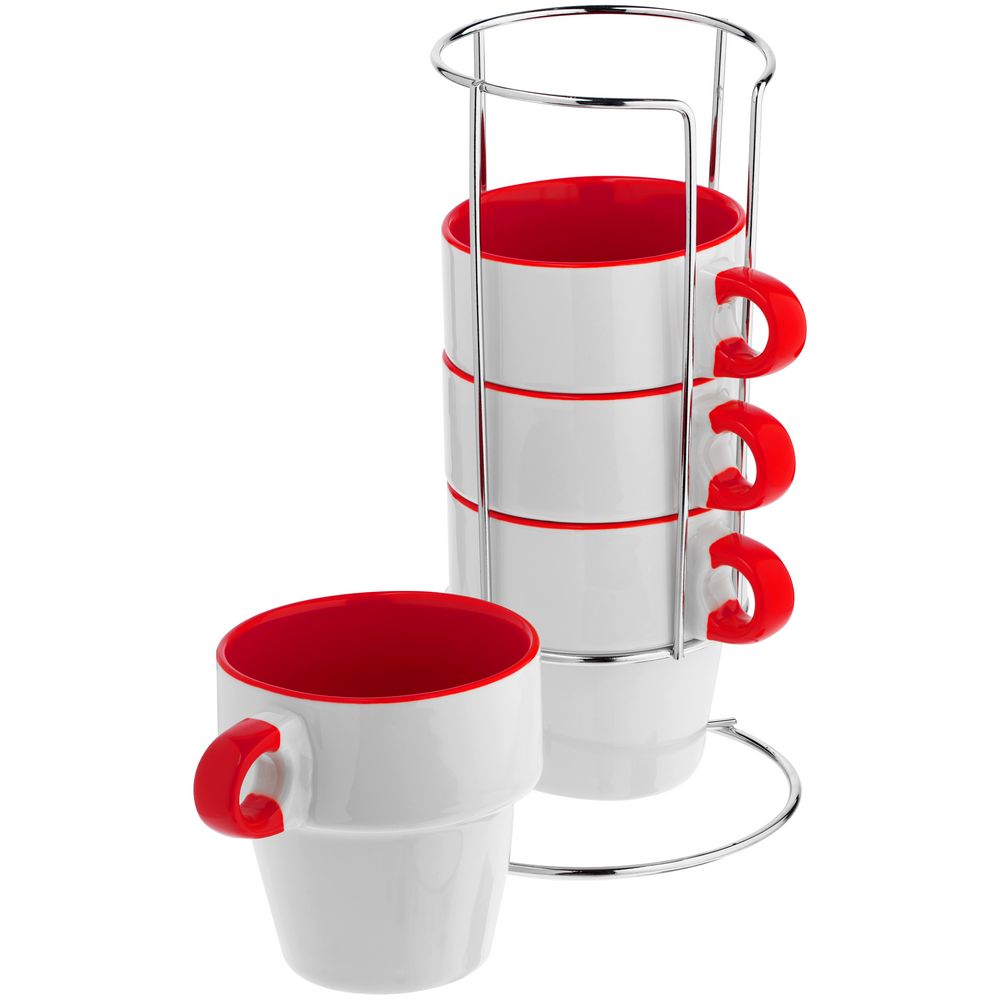 Набор из 4 кружек Inset с подставкой, красный можно заказать в нашей компании по самой доступной цене от 854 рублей.
