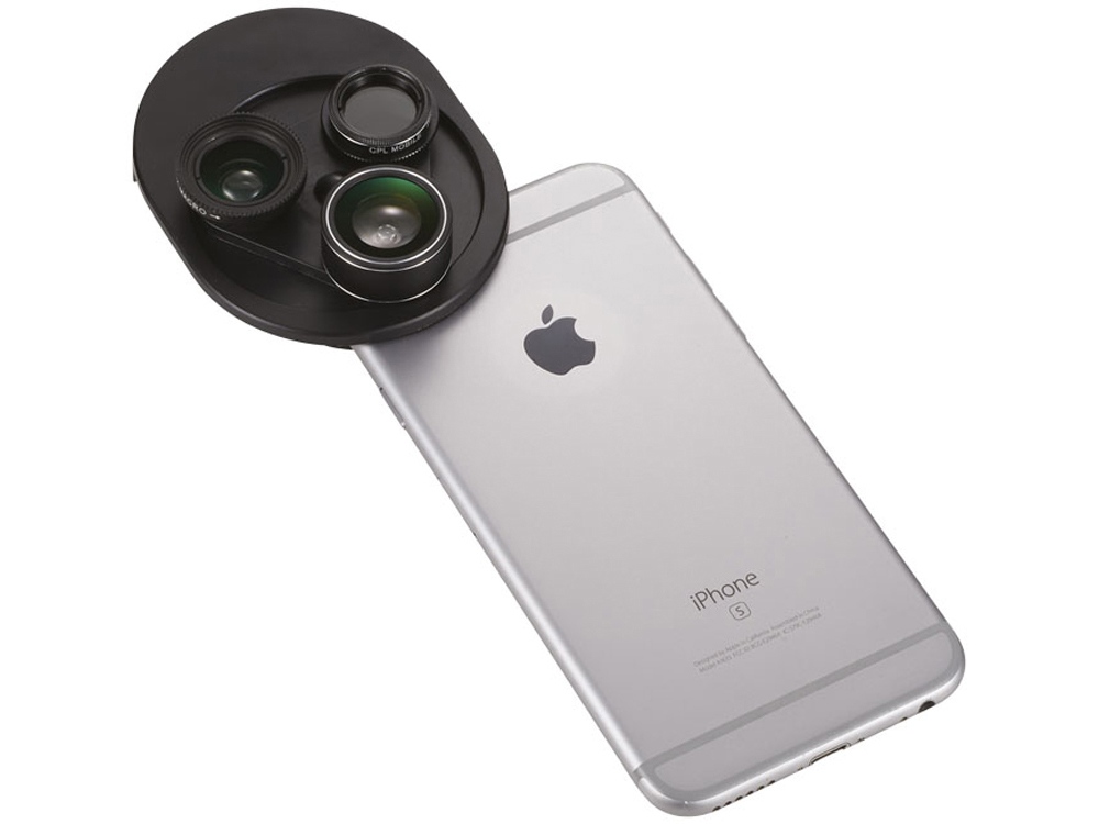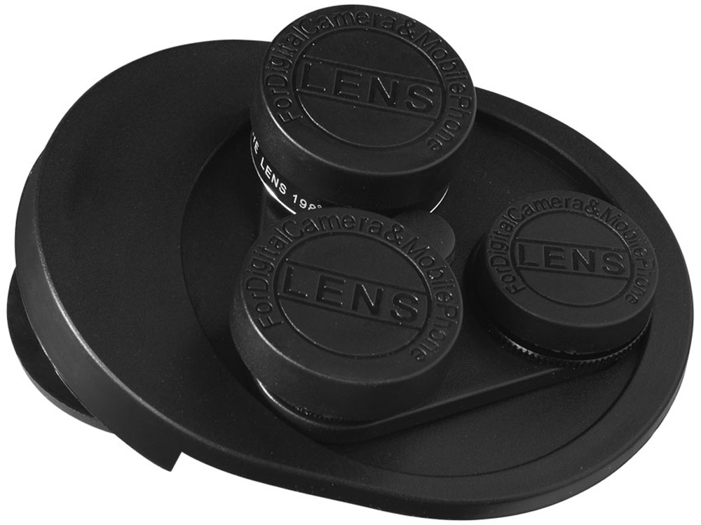 Набор линз для камеры смартфона 4 в 1. В комплекте линза рыбий глаз, широкоугольная линза, макро линза и CPL линза, которая устраняет рассеянный свет и создает более естественное изображение. Просто прикрепите набор к смартфону и прокрутите основание, чтобы протестировать все линзы. Размер без клипа: 4 х ø7.5 см. АБС пластик.
