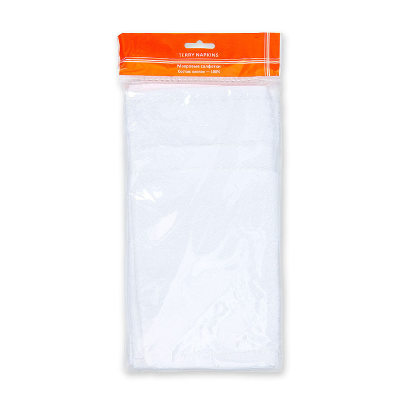 Набор натуральных гладкокрашеных махровых салфеток с жаккардовой косичкой из экологически чистого 100% хлопка, белого цвета. Упакованы в пакет с еврослотом для подвеса. В одной упаковке 4 салфетки.