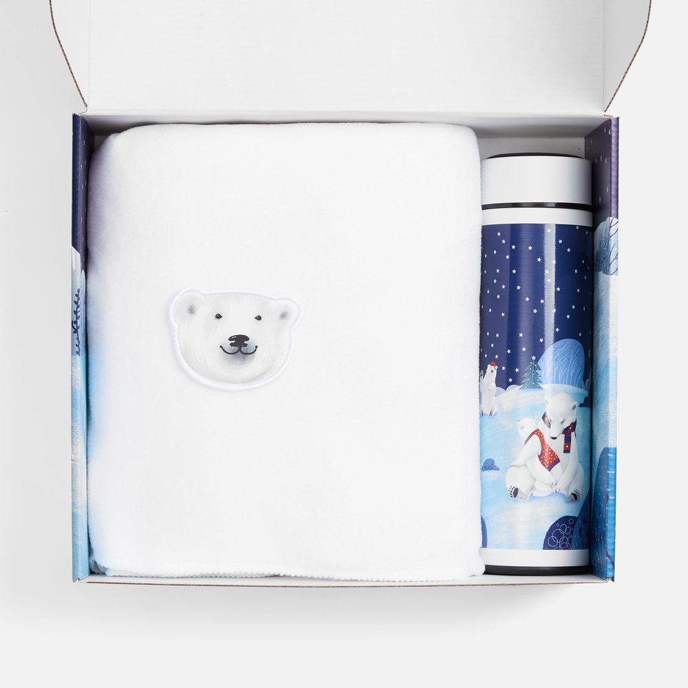 Все составляющие набора украшены милыми изображениями с белыми мишками — одним из главных зимних символов. Это дарит настоящее ощущение праздника — будто маленький очаг тепла, который всегда можно взять с собой.