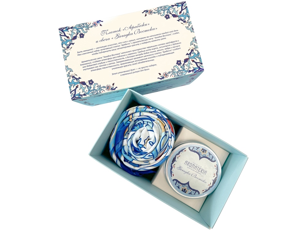 Набор: платок Арабески и свеча Загадка Востока можно заказать в нашей компании по самой доступной цене от 3 500 рублей.