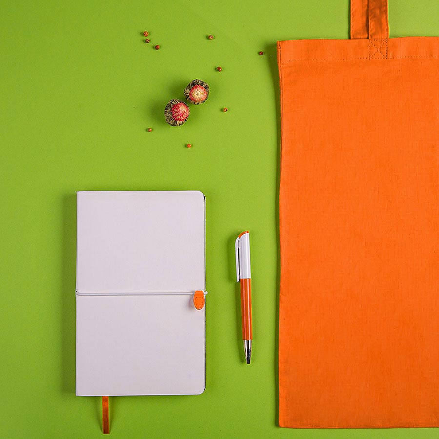 Гибкий переплет. Горизонтальная резинка с PU клипом с функцией пенхолдера Шариковая ручка TAG Глянцевый пластик, хромированный носик. Поворотный механизм. Стержень Jumbo, толщина пишущего узла 1,0 мм, синие чернила. Материал: ABS-пластик Сумка для покупок GEISER 105
