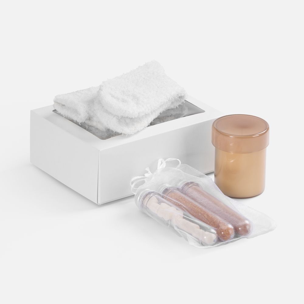 Пушистые носки и свеча с ароматом сосны и кипариса — уютный дуэт, который создает атмосферу безмятежности. Свеча наполняет пространство теплым светом и лесными нотами, после использования стильный подсвечник легко превращается в мини-контейнер или шкатулку.