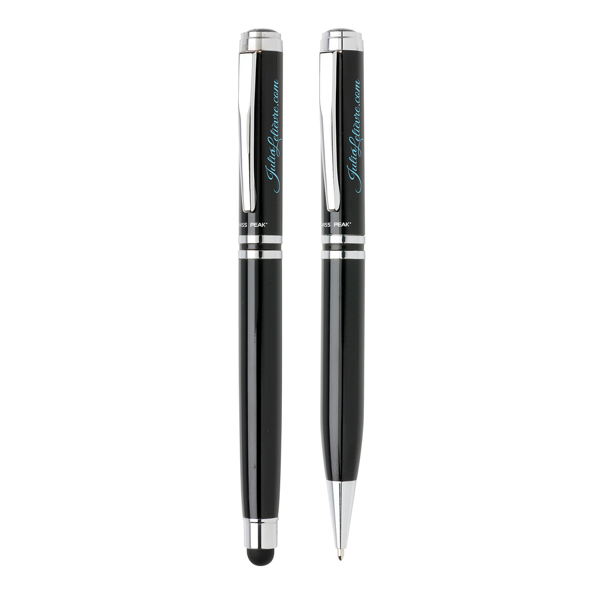 Набор ручек Swiss Peak executive включает в себя ручку-роллер из латуни со стилусом и шариковую ручку с логотипом Swiss Peak. Синие чернила. Поставляет в подарочной коробке, в комплекте идет стильный чехол. Длина 17,4 см., ширина 2,7 см., высота 11,7 см., диаметр 1,1 см.