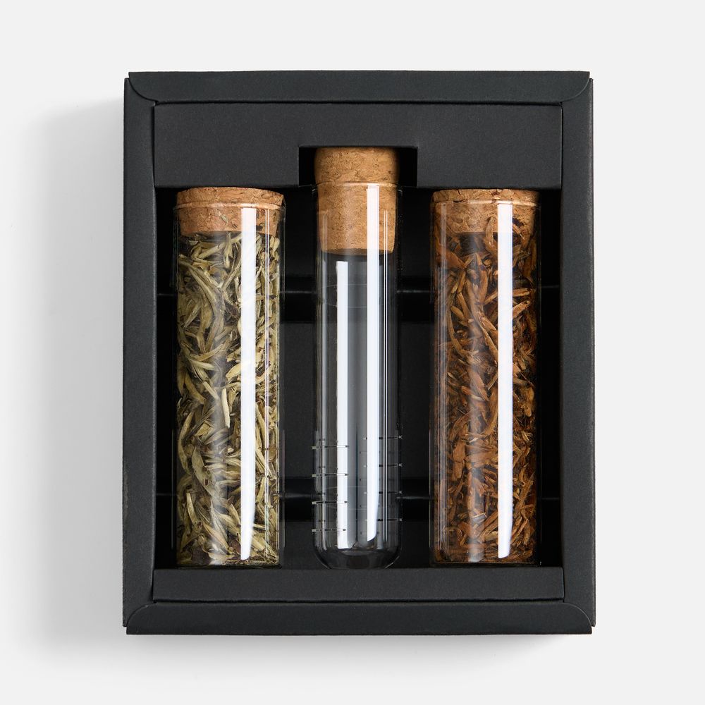 Набор Infuseful объединяет два благородных сорта чая, бережно упакованных в стеклянные колбы: нежный белый Бай Хао Инь Чжень с тонкими медовыми нотками и насыщенный красный Дянь Хун Цзинь Хао с фруктовым ароматом и мягким цветочным вкусом. Стильная стеклянная колба для заваривания позволяет наблюдать за волшебством раскрытия чайного листа.